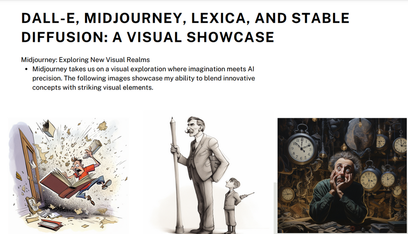 Proficient in leveraging AI for data analysis, image generation, and optimization. Experienced with ChatGPT for creating engaging and relevant content. Skilled in using Dall-E and Midjourney for advanced image generation and creative design.